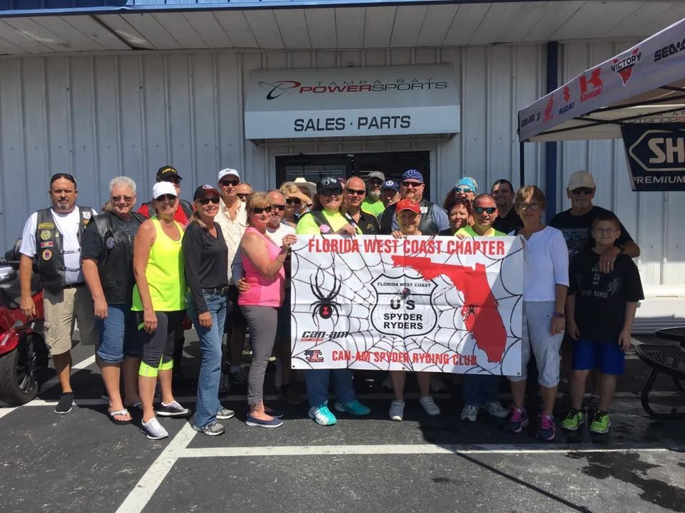 The objective of the US Spyder Ryders - Florida West Coast Chapter motorcycle ryding club is to promote Can-Am Spyders and Spyder Ryding while focusing on having fun and at the same time attempting to do the most good for our community and local charities. We accomplish this objective with positive interaction within our community while providing a safe and controlled environment for our members during all our functions. We pride ourselves in the involvement of many community and charitable events. We will have local rydes, long distance rydes, socials, and fund raiser activities.