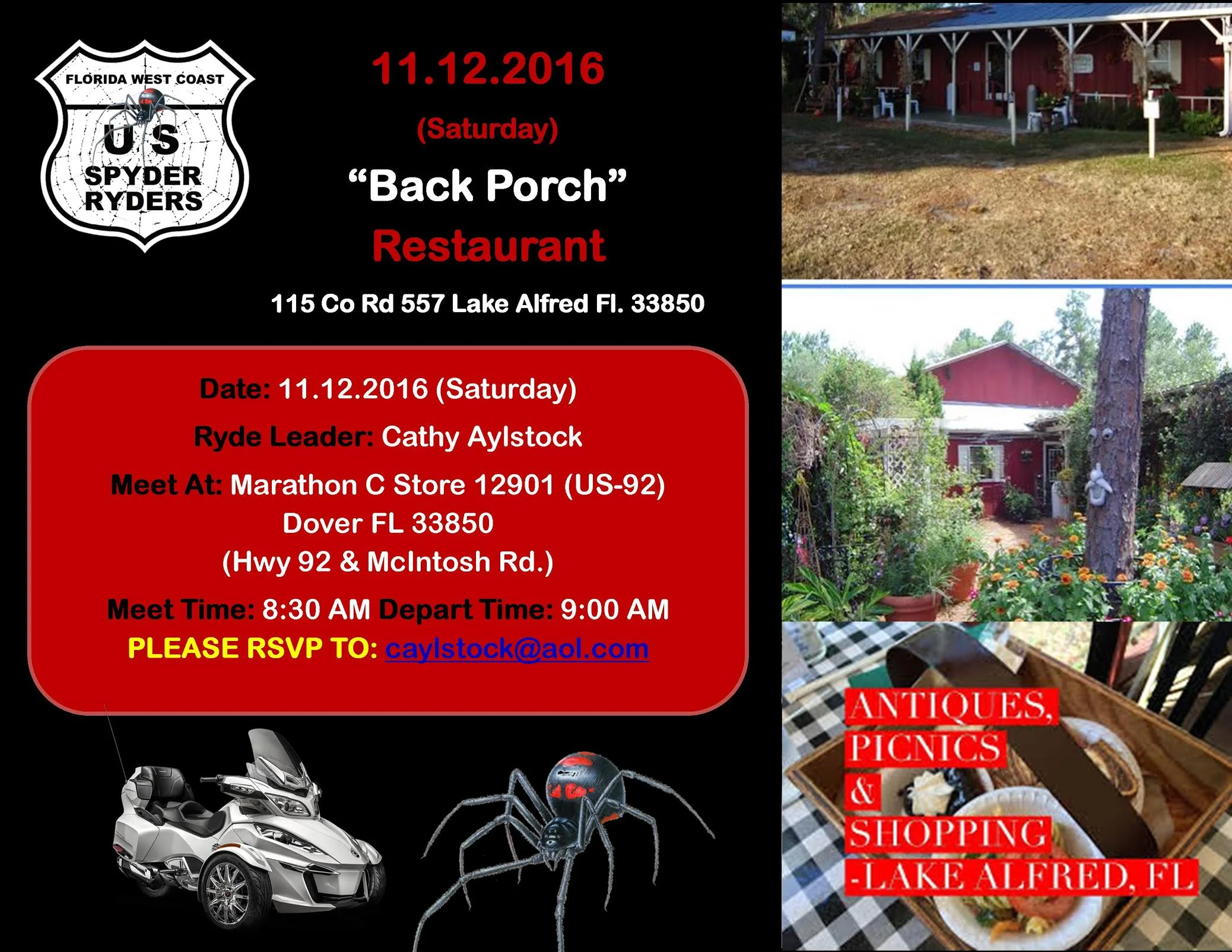 Back Porch Restaurant - November 12, 2016 View fullsize Newer:Fort Myers Adventure - November 19, 2016Older:The Old Mill Tavern - November 5, 2016 PostedNovember 12, 2016 AuthorJames Gerdes